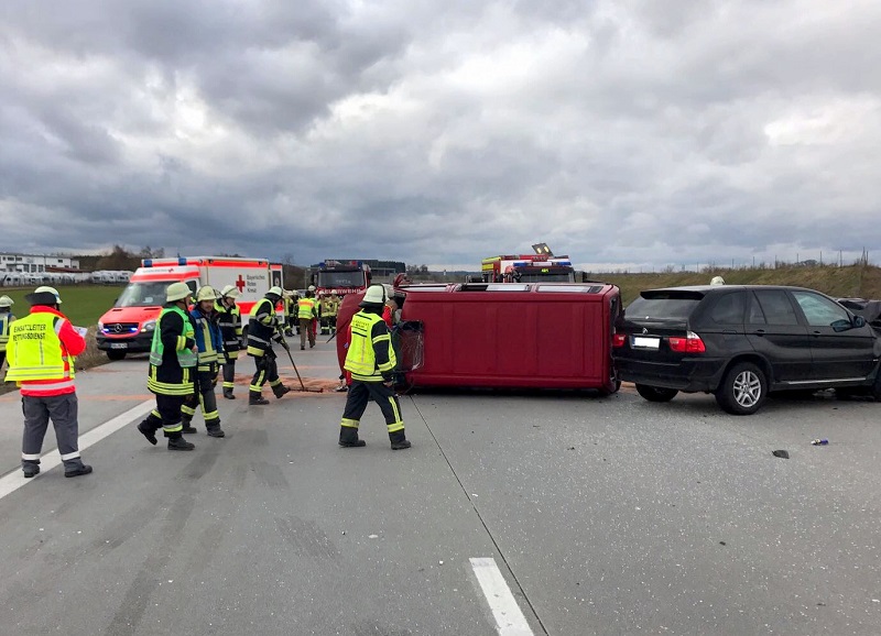Sieben Verletzte bei Verkehrsunfall auf der A8