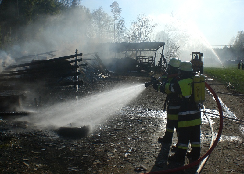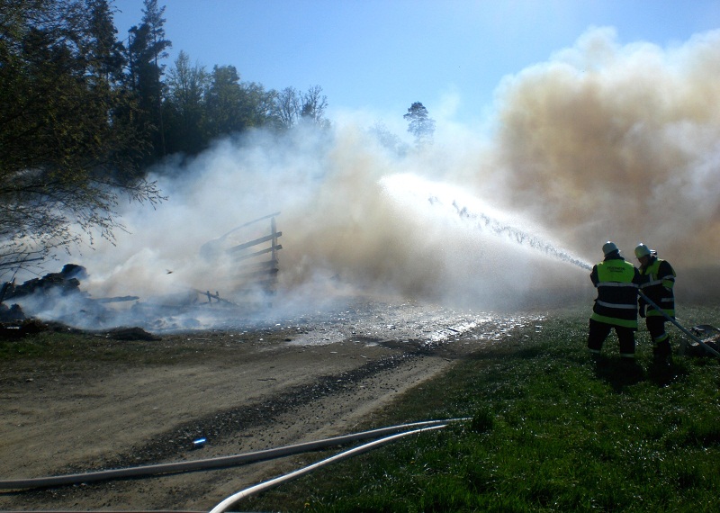 Keinen ruhigen Karfreitag hatten die Feuerwehren im Landkreis Dachau. Neben kleineren Bränden und technischen Hilfeleistungen waren die Einsatzkräfte am späten Freitagnachmittag bei einem Stadelbrand zwischen Großinzemoos und Sigmertshausen gefordert. Beim Eintreffen der ersten Feuerwehren aus Röhrmoos, Sigmertshausen, Vierkirchen und Indersdorf stand der Feldstadel bereits im Vollbrand.Aufgrund der anhaltenden Dürre ist es bereits zu kleineren Folgebränden im angrenzenden Jungwaldbereich und an einem 100 Meter entfernten Heuhaufen gekommen.