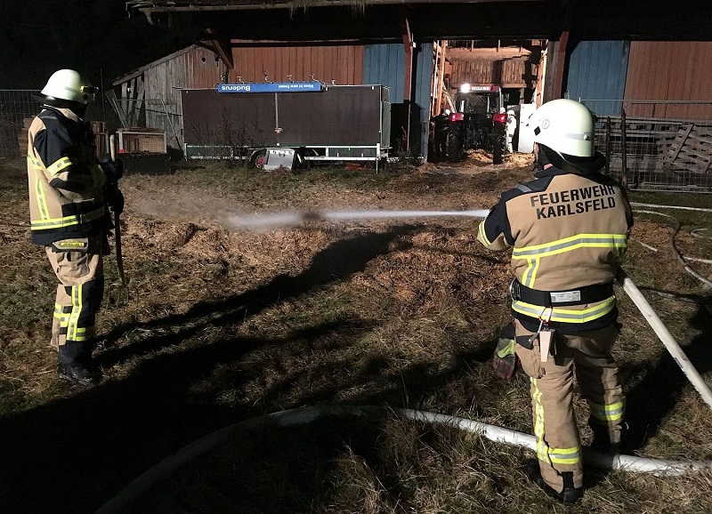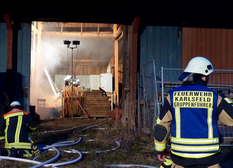 Bei der anschließenden Brandbekämpfung durch die Kameraden aus Karlsfeld und Dachau kamen drei C-Rohre und diverse Trupps unter Atemschutz zum Einsatz. Das Feuer war nach rund einer Stunde weitestgehend abgelöscht. Vereinzelte Glutnester konnten mit Hilfe von Wärmebildkameras ausfindig gemacht und kontrolliert bekämpft werden.