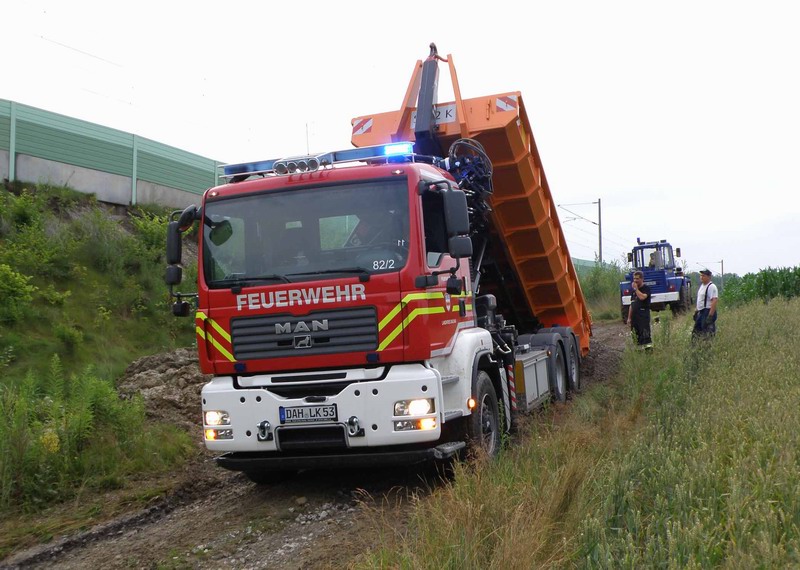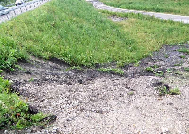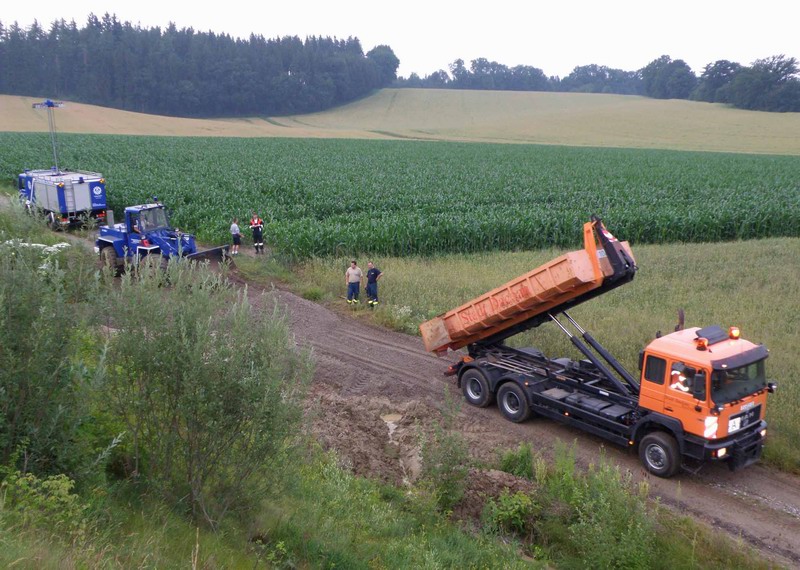 An der neuen Auffahrt zur B 471 in Karlsfeld spülten die Wassermassen eine Böschung weg – Einsatzkräfte der Feuerwehr Karlsfeld waren Stunden damit beschäftigt, die Gefahr zu beseitigen.