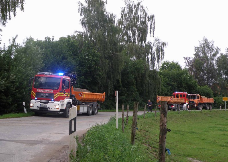 Sintflutartige Regenfälle gingen am Freitag Nachmittag über dem Landkreis Dachau nieder; am schwersten betroffen waren Ampermoching, Dachau und Hebertshausen. Um 19.30 Uhr konnte die erste Bilanz gezogen werden – 163 Einsätze!In erster Linie waren überflutete Keller und Strassen abzupumpen; dramatisch war die Situation in Ampermoching, wo der Sietenbach über die Ufer trat und etliche Häuser und Strassen unter Wasser setzte – ähnliche Szenen spielten sich in Dachau und Hebertshausen ab.