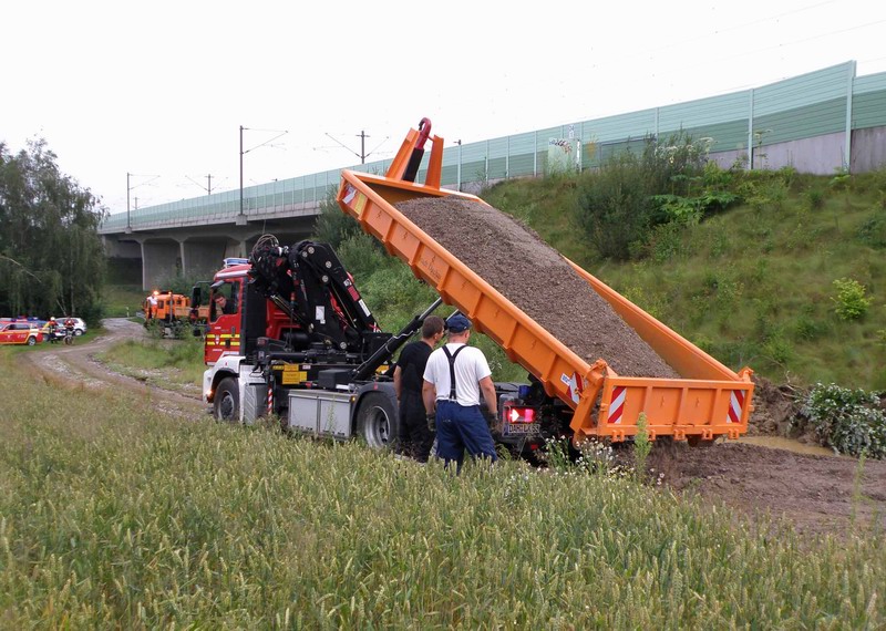 Betroffen war auch der Schienenverkehr auf der Strecke Dachau-Petershausen; bei Reipertshofen wurden Schallschutzmauern der ICE –Strecke unterspült. Zwei Gleise wurden total gesperrt. Stundenlang waren auch hier die Einsatzkräfte von Feuerwehr und THW damit beschäftigt, die Wände mit Kies zu stabilisieren.