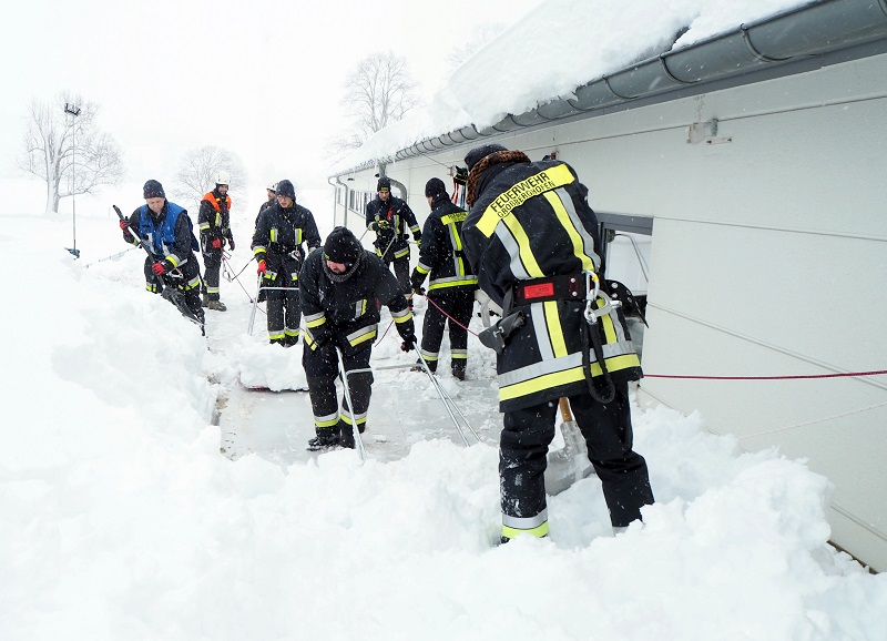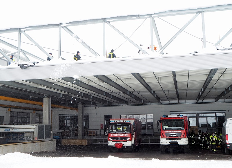 Im dortigen Gewerbegebiet mussten mehrere Hallendächer, die von massiver Schneelast betroffen waren, abgeräumt werden. Der hüfthohe Schnee auf den Dächern hatte bereits ein Gewicht von 125 Kilogramm pro Quadratmeter, aufgrund der erwarteten weiteren Schneefälle bzw. des Schneeregens war Eile geboten, um die Gebäude nicht statisch zu gefährden.