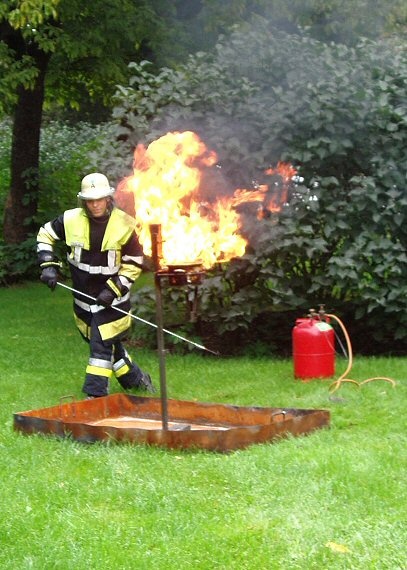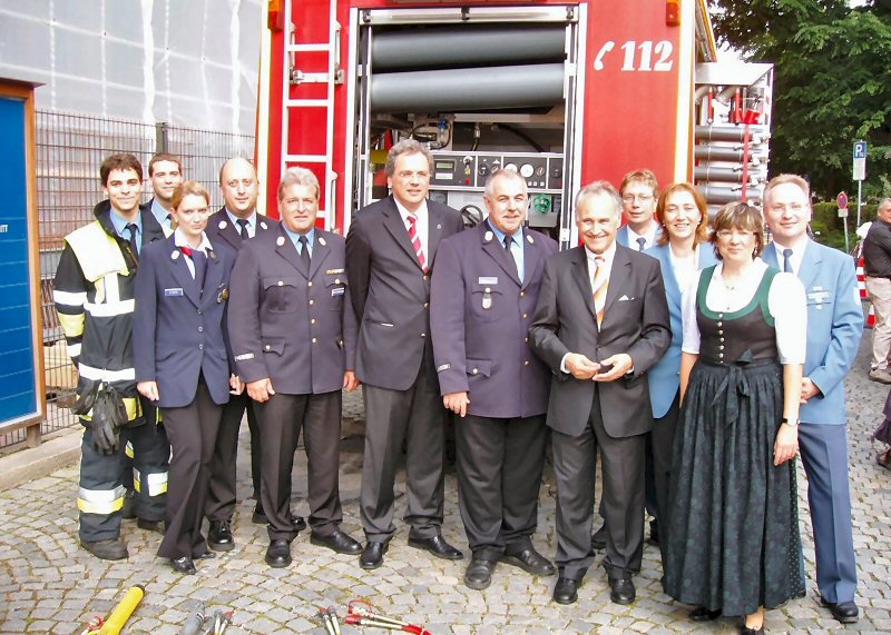 Bereits zum neunten Mal vertrat der Kreisfeuerwehrverband Dachau im Auftrag des Bezirksfeuerwehrverbandes Oberbayern beim Tag der offenen Tür der Regierung von Oberbayern in München die Feuerwehren des Regierungsbezirkes. Während die Dachauer Feuerwehr bei der Veranstaltung in der Maximilianstrasse ihre Drehleiter präsentierte, stellte die Kreisbrandinspektion Dachau das Schnelleinsatzzelt samt Informationsständen rund um das Feuerwehrwesen und die Indersdorfer Feuerwehr ihr Hilfeleistungslöschfahrzeug vor. Informationsschwerpunkt in diesem Jahr war, der Bevölkerung die Folgen einer Fettexplosion, sowie die einer Spraydosenexplosion in realistischer Weise nahe zu bringen. Mehrere hundert Besucher konnten dabei die praktischen Vorführungen und deren Folgen, die von Dachauer Feuerwehrleuten auf dem Vorplatz vorgeführt wurden, in Augenschein nehmen. An Informationsständen standen Kreisbrandrat Rudi Reimoser und Kreisbrandinspektor Heinrich Schmalenberg, unterstützt von den Dachauer und Indersdorfer Feuerwehrdienstleistenden den Besuchern Rede und Antwort –auch der Stand der Jugendfeuerwehr war rege besucht. Der Regierungspräsident von Oberbayern, Christoph Hillenbrand und die Vizepräsidentin Heidrun Piwernetz ließen es sich nicht nehmen, die Feuerwehrdelegation aus dem Landkreis Dachau persönlich zu begrüssen und sprachen ihnen Lob und Anerkennung für ihre ehrenamtliche Tätigkeit aus – nachdem sich Regierungspräsident Hillenbrand von Kreisbrandrat Reimoser ausführlich über das Feuerwehrwesen im Landkreis Dachau informieren ließ, durfte natürlich eine Fahrt mit der Dachauer Drehleiter mit Ausblick auf die Münchner Innenstadt nicht fehlen. Auch der ehemalige Regierungspräsident, Werner-Hans Böhm, sowie der Bayerische Staatsminister für Bundesangelegeheiten und Verwaltungsreform, Erwin Huber, statteten der Dachauer Abordnung einen Besuch ab und sprachen ihnen Dank und Anerkennung aus.