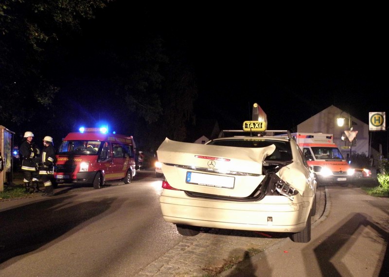 Der Taxifahrer, der allein in seinem Fahrzeug unterwegs war, erlitt bei dem Zusammenstoß lediglich leichte Blessuren und wurde von Notarzt und Rettungsdienst ambulant vor Ort behandelt – die Feuerwehren Kleinberghofen und Eisenhofen übernahmen die Absicherung und Ausleuchtung der Einsatzstelle.