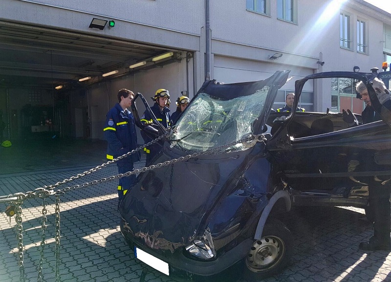 Neben den bereits bekannten und praktizierten Methoden, um eingeklemmte Personen mittels Rettungsgerät zu befreien, war ein Ausbilder der Berufsfeuerwehr Ingolstadt vor Ort und erläutere den Teilnehmern andere Möglichkeiten. Nach einem theoretischen Part wurden diese dann in die Praxis umgesetzt, unter anderem die Personenrettung nach der "Oslo-Methode" mit Kettenzügen.