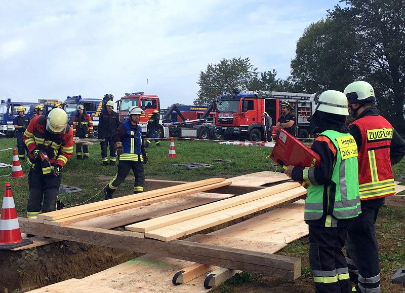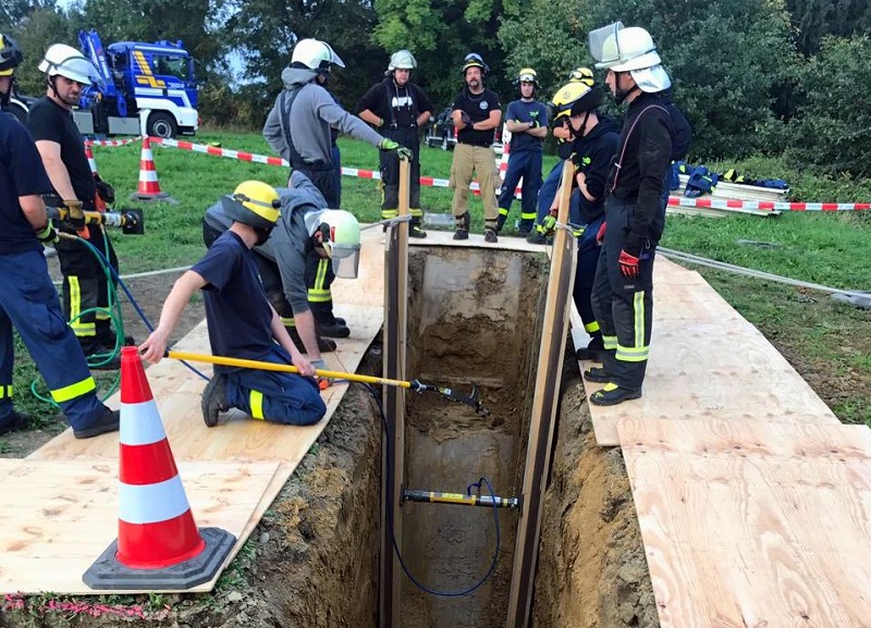 Damit im Ernstfall dann auch alle Handgriffe perfekt sitzen und Menschenleben gerettet werden können, fand am vergangenen Wochenende (29.09. und 30.09.2017) eine 2-tägige Schulung des Bedienpersonals durch die Firma Heavy Rescue Germany in Günding statt. Dabei wurde das bestehende Konzept für Tiefbauunfälle verfeinert, Standard-Szenarios eingeübt und das Material des neuen Abrollbehälters ausgetestet.