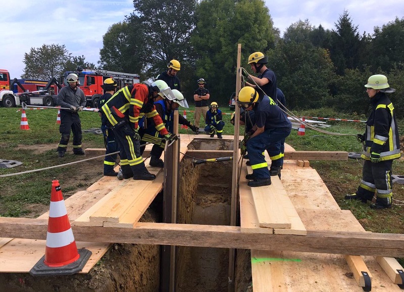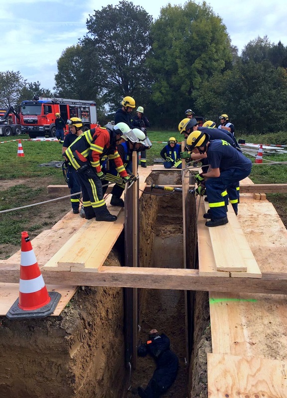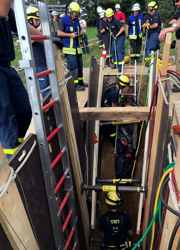 Tiefbauunfälle - Feuerwehr und THW üben gemeinsam für den Ernstfall