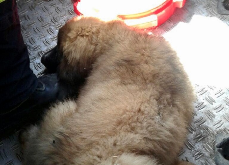 Weil nicht klar war, wie das Tier nach dem Unfall reagieren würde, gingen die Feuerwehrleute unter größter Vorsicht vor und betreuten es ständig. Nachdem sie der Gitterbox mit einer Brechstange zu Leibe gerückt waren, konnte der Hund aus seiner misslichen Lage befreit werden.