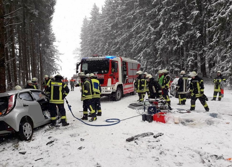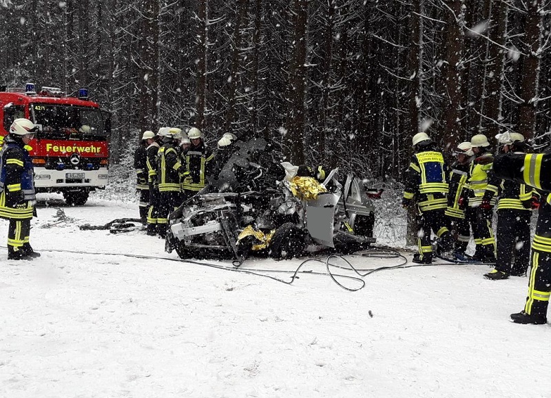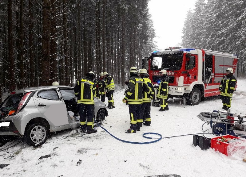 Aus noch unbekannter Ursache sind gegen 12:30 Uhr ein Toyota und ein BMW in einem Waldstück der Staatsstraße bei schneebedeckter Fahrbahn zusammengestoßen. Während die beiden Insassen des BMW nach der medizinischen Erstversorgung mit mittelschweren Verletzungen in ein Krankenhaus verbracht werden konnten, wurde die Lenkerin des Toyota durch die Wucht des Aufpralls in Ihrem Fahrzeug eingeklemmt und tödlich verletzt.
