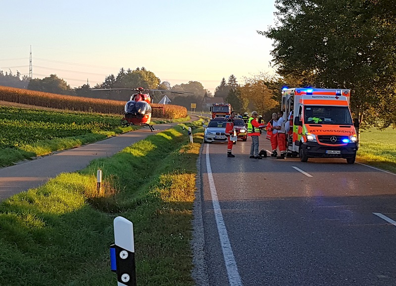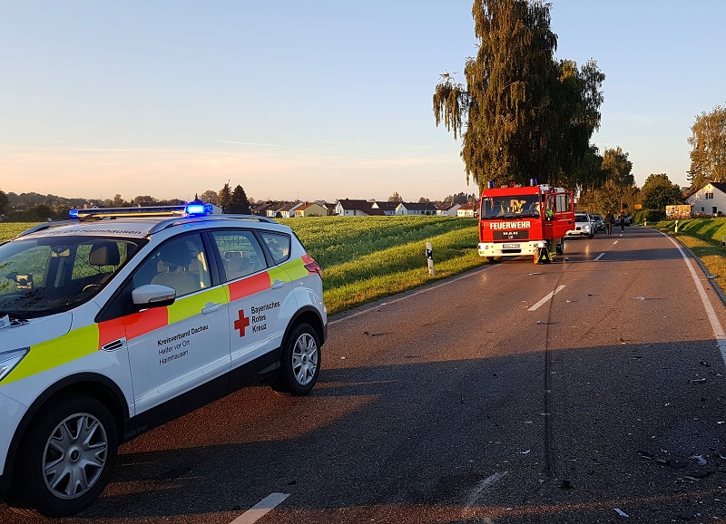Am Mittwochmorgen (12.09.2018) wurden um 6.09 Uhr die Feuerwehren Ampermoching, Röhrmoos, Haimhausen und die Kreisbrandinspektion zu einem Verkehrsunfall mit drei beteiligten Fahrzeugen und einer eingeklemmten Person alarmiert.