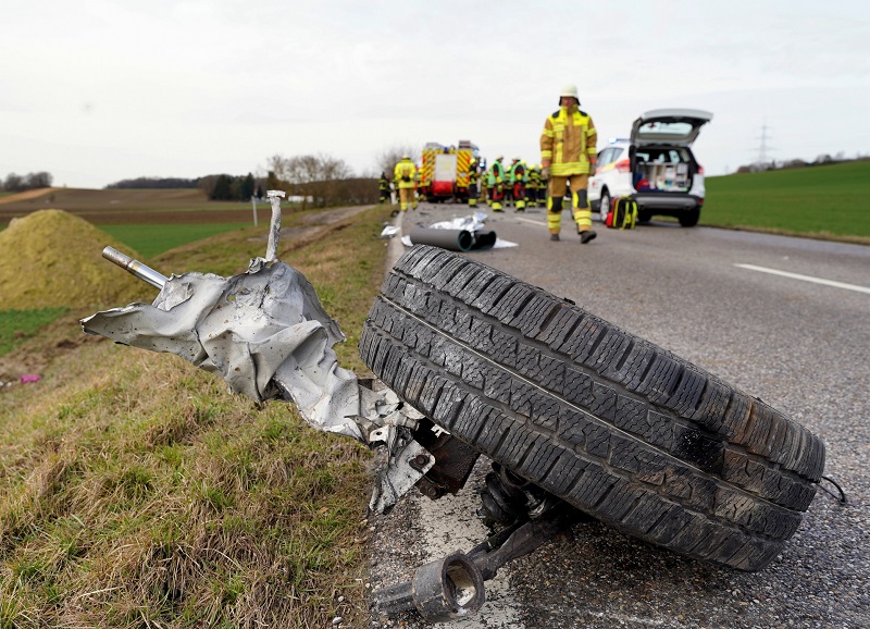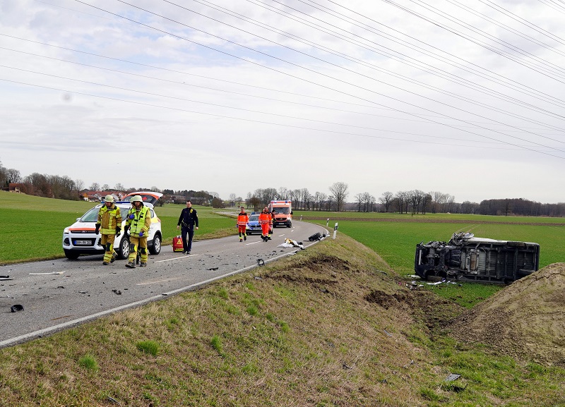 Der Kleintransporter wurde infolge des Zusammenpralls in den angrenzenden Acker geschleudert und kam auf der Seite zum Liegen, der Fahrer wurde dabei leicht verletzt und zur weiteren Behandlung in eine Münchner Klinik gebracht.