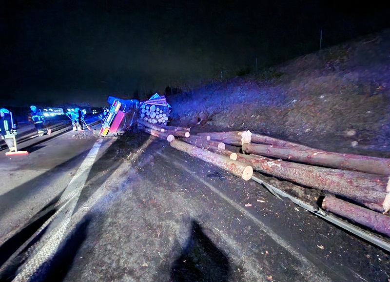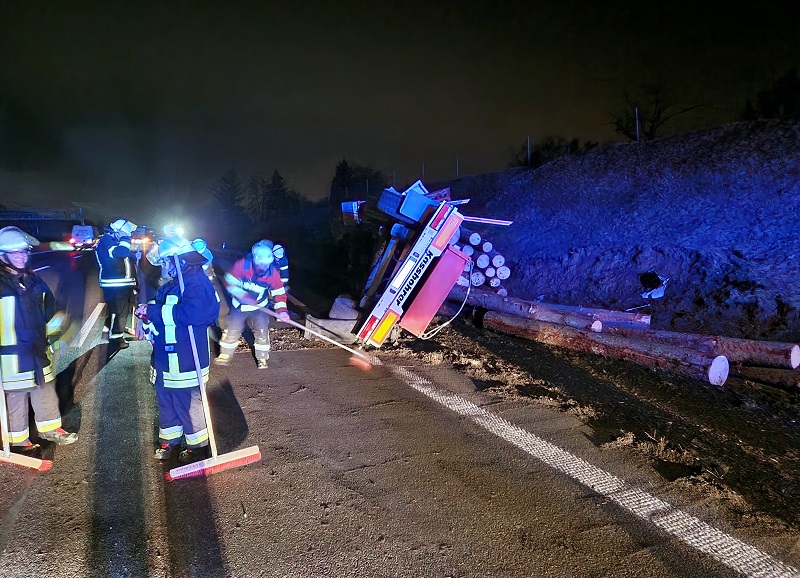 Umgestürzter Holztransporter auf der A 8