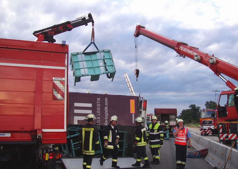 Neben den alarmierten Feuerwehren aus den Landkreisen Aichach-Friedberg, Dachau und Fürstenfeldbruck war auch die Berufsfeuerwehr München u.a. mit einem Kranfahrzeug an der Unfallstelle eingesetzt.