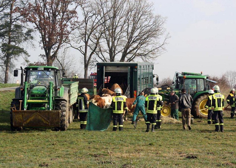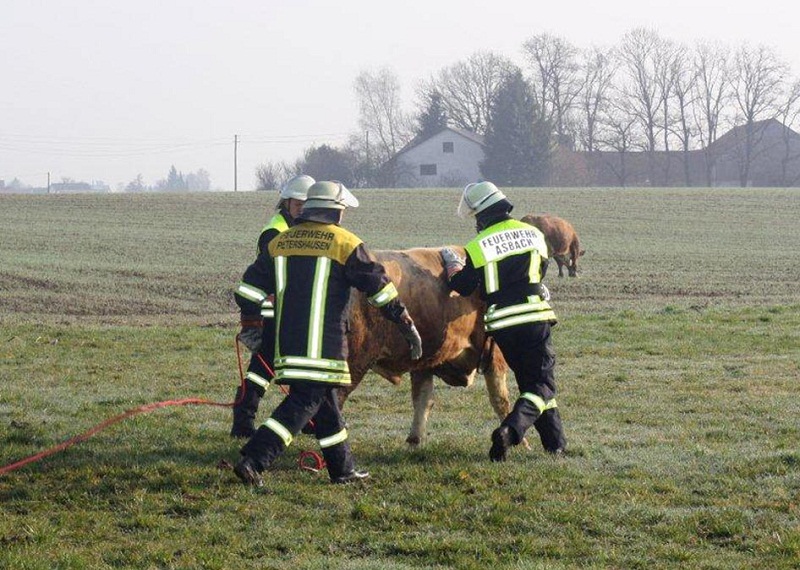 Die Feuerwehren Asbach und Petershausen hatten alle Hände voll zu tun, die ausgerissenen Tiere einzufangen und in einen bereitgestellten Transporter zu verladen.