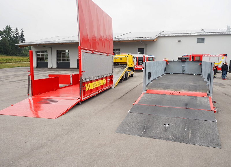 Die Firma Schweitzer hat vor kurzem einen Hochvolttrailer sowie einen Abrollbehälter Hochvolt beschafft. Diese können im Einsatzfall angefordert und mit Wasser geflutet werden; somit kann eine Kühlung der Batterien in Brand geratener oder havarierter E-Fahrzeuge gewährleistet werden und infolge auch ein gesicherter Abtransport.