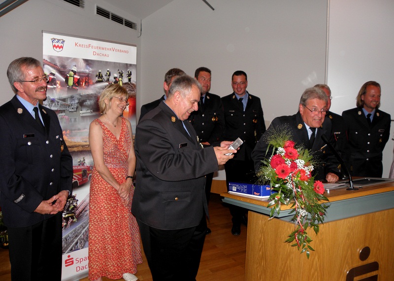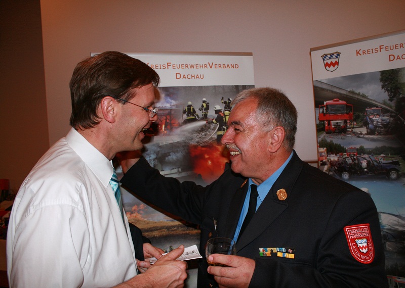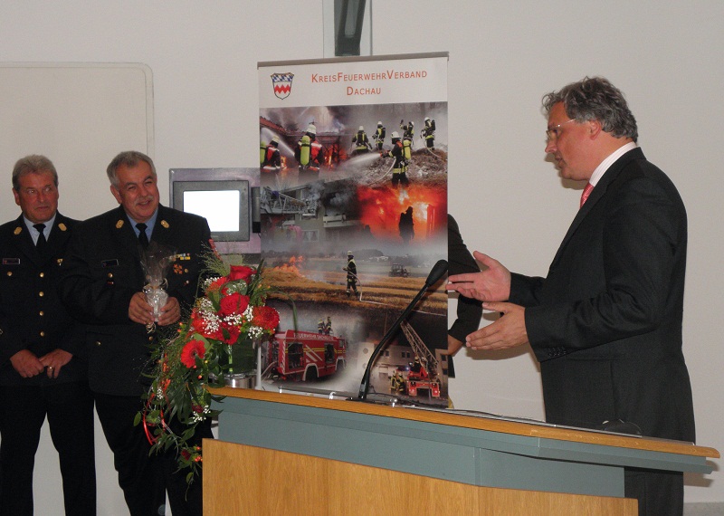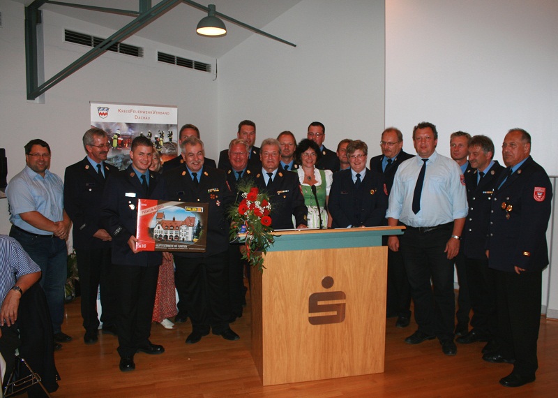 Im Saal der Sparkasse Dachau fand am Montagabend (19.07.2010) die Verabschiedung von Kreisbrandrat Rudi Reimoser statt.Neben Landrat Hansjörg Christmann nahmen Abgeordnete des Landtages, Vertreter der Regierung von Oberbayern und des Landratsamtes, die Bürgermeister der einzelnen Gemeinden, Führungskräfte von Sparkasse, Polizei, Bereitschaftspolizei, BRK, Bundeswehr, Technischem Hilfswerk und des Klinikums Dachau teil.