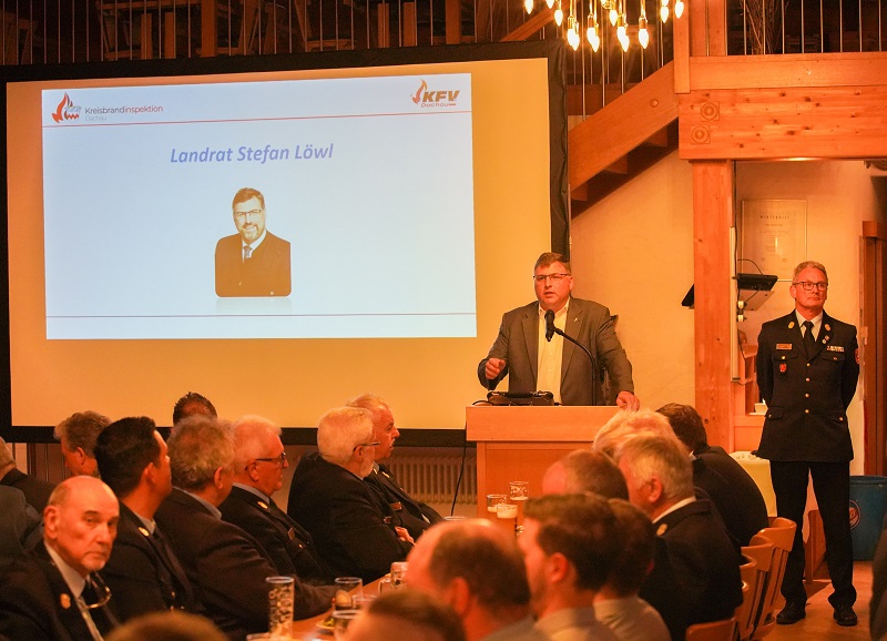 Kreisbrandrat Georg Reischl konnte dazu neben den Kommandanten und Vereinsvorständen der Landkreisfeuerwehren besonders Landrat Stefan Löwl, die Bürgermeister der Gemeinden, die Vertreter des Landratsamtes, sowie Mitglieder von THW, Polizei, Bundeswehr und Leitstelle sowie der Kreisbrandinspektionen aus den Nachbarlandkreisen begrüßen.