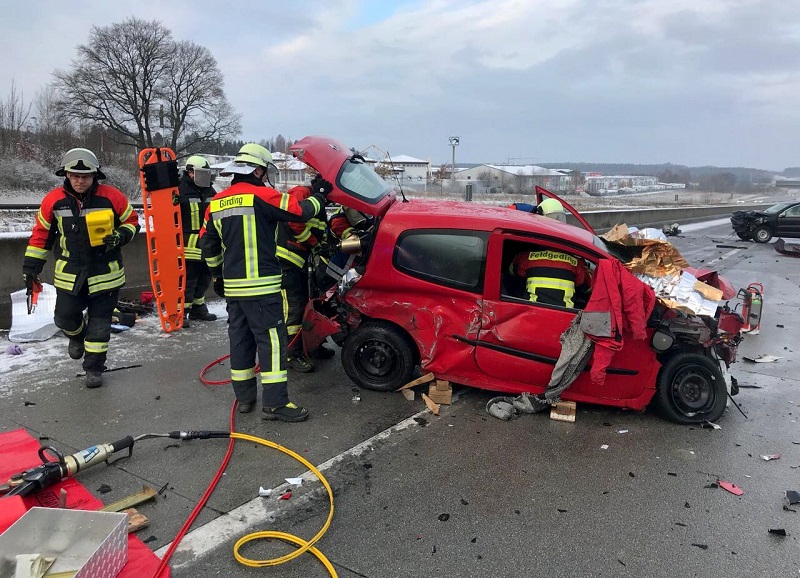 Zu einem schweren Verkehrsunfall auf der A8 wurden am Sonntagmorgen (17.12.2017) gegen 8:50 Uhr neben dem Rettungsdienst die Feuerwehren Feldgeding, Günding und Geiselbullach alarmiert.