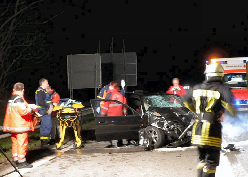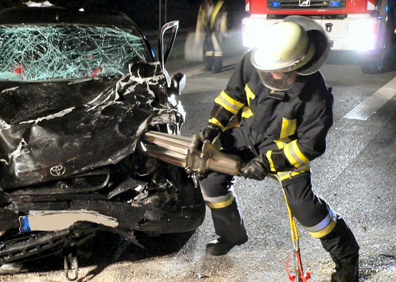 In den frühen Morgenstunden des Donnerstags kam es gegen 02.30 Uhr auf der A 8 zwischen den Anschlussstellen Sulzemoos und Dachau zu einem folgeschweren Unfall, wobei eine Person in ihrem Fahrzeug eingeklemmt wurde und von Einsatzkräften der Feuerwehr mittels Spreizer und Schere befreit werden musste. Aus noch ungeklärter Ursache touchierte ein Pkw-Lenker ein vor ihm fahrendes Fahrzeug; dieser kam daraufhin ins Schleudern, prallte frontal gegen eine Betonwand und wurde dann in die Fahrbahnmittel zurück geschleudert. Obwohl die Unfallbeteiligten und andere Verkehrsteilnehmer sofort die Unfallstelle abzusichern versuchten, raste Momente später ein weiteres Fahrzeug ungebremst in das Unfallauto. Der Fahrer wurde beim Aufprall mittelschwer verletzt, wurde in seinem Fahrzeug eingeklemmt und musste, wie schon erwähnt, von der Feuerwehr befreit werden – die anderen Beteiligten erlitten leichte Verletzungen.Die alarmierten Feuerwehren aus Feldgeding, Odelzhausen, Pfaffenhofen/Glonn und Sulzemoos waren mit der Personenrettung, der Ausleuchtung und Reinigung der Unfallstelle, sowie mit der Verkehrsabsicherung bis in die frühen Morgenstunden beschäftigt.