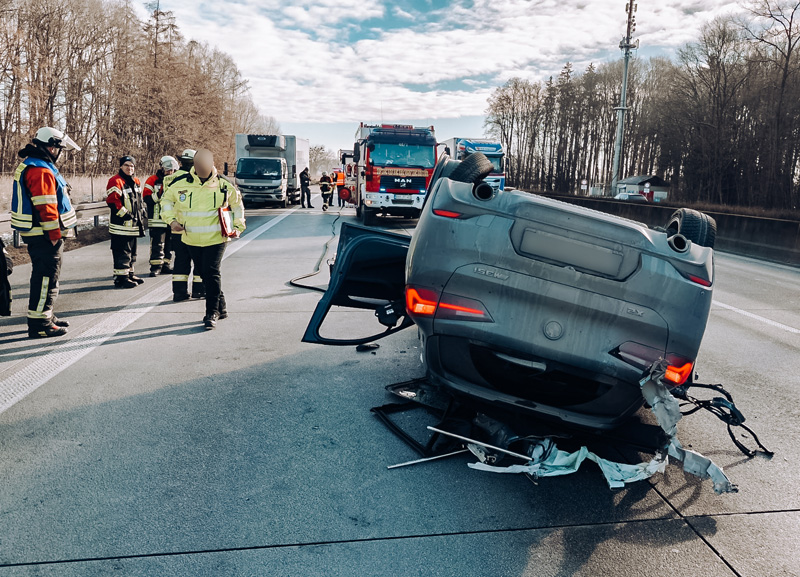 Verkehrsunfall auf der A8: Pkw überschlägt sich – Fahrer schwer verletzt