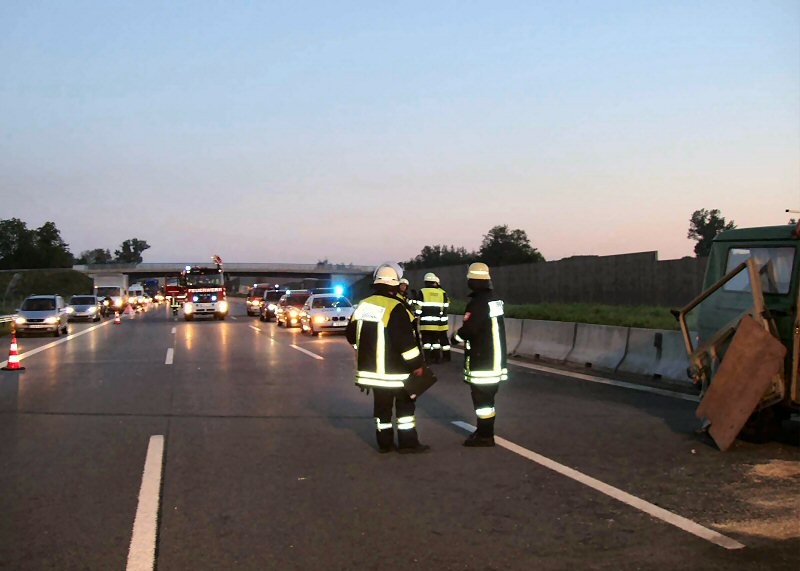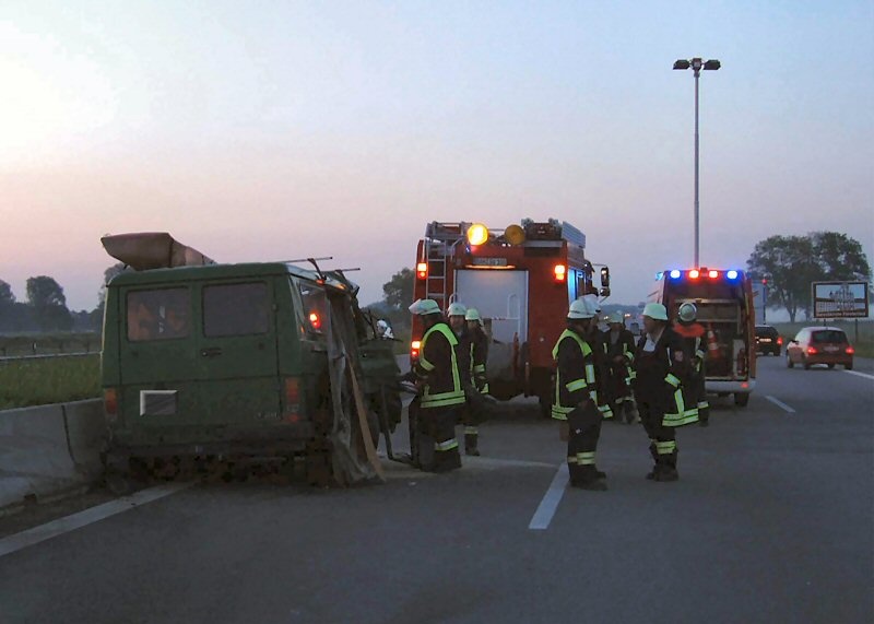 Zu einem weiteren schweren Verkehrsunfall kam es in den frühen Morgenstunden des Montags (21.05.07) auf der A 8 zwischen den Ausfahrten Sulzemoos und Dachau. In Höhe von Palsweis kam aus noch ungeklärter Ursache der Lenker eines VW-LT von der Fahrbahn ab, touchierte die Mittelleitplanke und prallte schließlich in diese; dabei wurde der Fahrer in seinem Wagen eingeklemmt.Mit Verletzungen unbestimmten Grades wurde er von Einsatzkräften der Feuerwehr mit hydraulischem Rettungsgerät aus dem Wrack befreit und dem Rettungsdienst übergeben. Zur Klärung des Unfallherganges wurde ein Gutachter herangezogen.