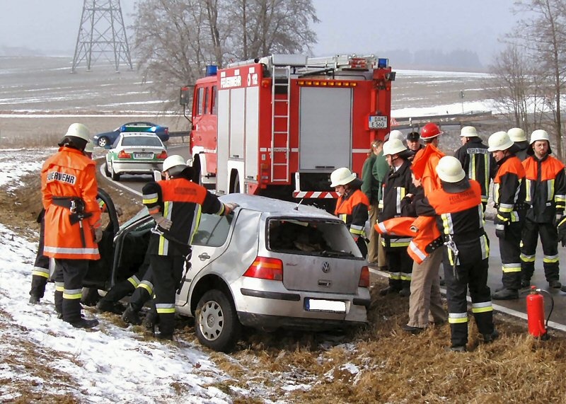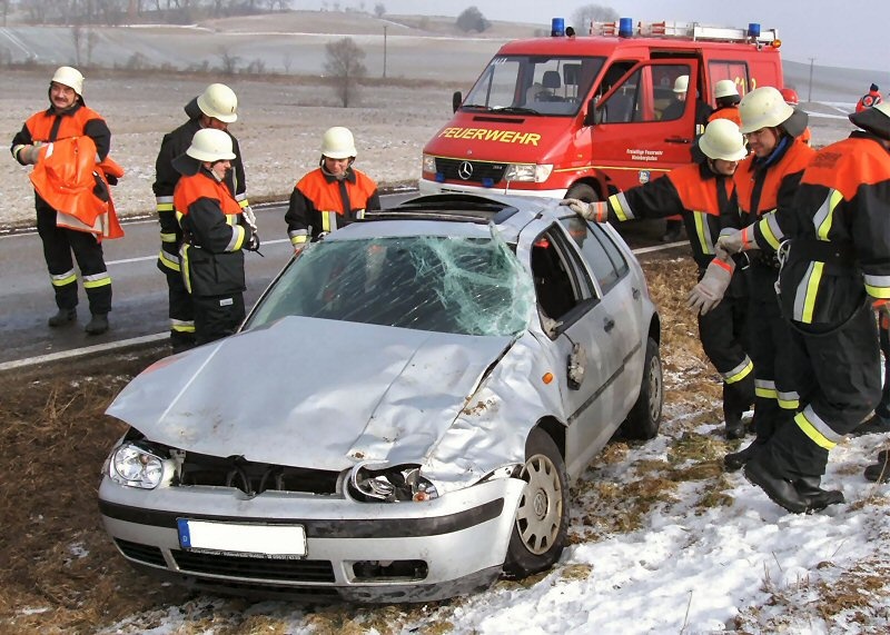 Zwei Verletzte forderte ein Verkehrsunfall in den Mittagsstunden des Sonntags auf der Staatsstraße 2047 zwischen Kleinberghofen und Unterzeitlbach.Vermutlich während eines Überholvorgangs kam der Lenker eines VW-Golfs ins Schleudern, überschlug sich mehrere Male und kam schließlich seitlich am Fahrbahnrand zum Liegen.Da zunächst unklar war, ob Personen in dem Fahrzeug eingeklemmt sind, wurden neben Notarzt, Polizei und Rettungsdienst vorsorglich die Feuerwehren Altomünster, Eisenhofen und Kleinberghofen alarmiert.Beim Eintreffen der ersten Einsatzkräfte stellt sich allerdings heraus, dass glücklicherweise niemand eingeklemmt war.Während die Feuerwehren Altomünster und Eisenhofen die Verkehrsumleitung übernahmen, führten die Wehren Kleinberghofen und Eisenhofen die Räumung der Unfallstelle durch.