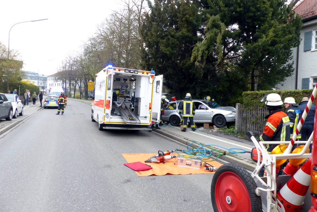 Am Dienstag (09.04.2019) wurden die Feuerwehren Dachau und Günding gegen 11:15 Uhr zu einem Verkehrsunfall in der Schillerstraße gerufen. Vermutlich aufgrund eines medizinischen Notfalls war ein Pkw-Fahrer von der Fahrbahn abgekommen und gegen einen Baum geprallt.Auf Weisung des Notarztes und in laufender Abstimmung mit dem Rettungsdienstpersonal erfolgte die schonende Rettung durch den Kofferraum. Hierfür mussten Teile des Autos mittels hydraulischer Geräte entfernt werden. Die Schillerstraße blieb für die Dauer der Rettungsmaßnahmen für den Verkehr gesperrt.