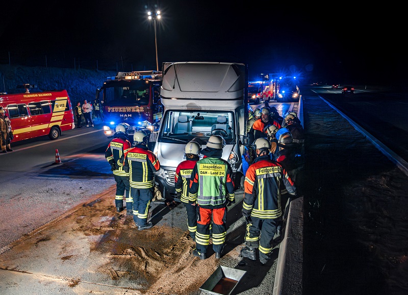 Verkehrsunfall mit Kleintransporter auf der Autobahn