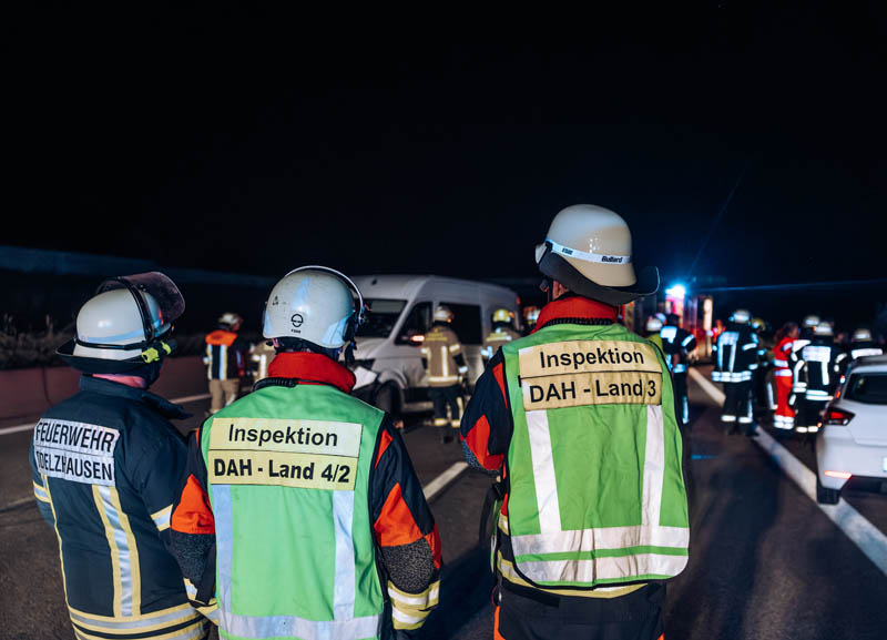 Die Feuerwehr kümmerte sich um die Verkehrsabsicherung sowie die Sicherstellung des Brandschutzes und unterstützte bei der Fahrbahnreinigung. Daneben verbrachten die Einsatzkräfte die verunfallten Fahrzeuge auf den Standstreifen.