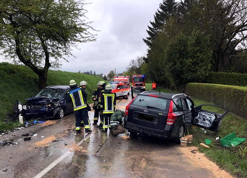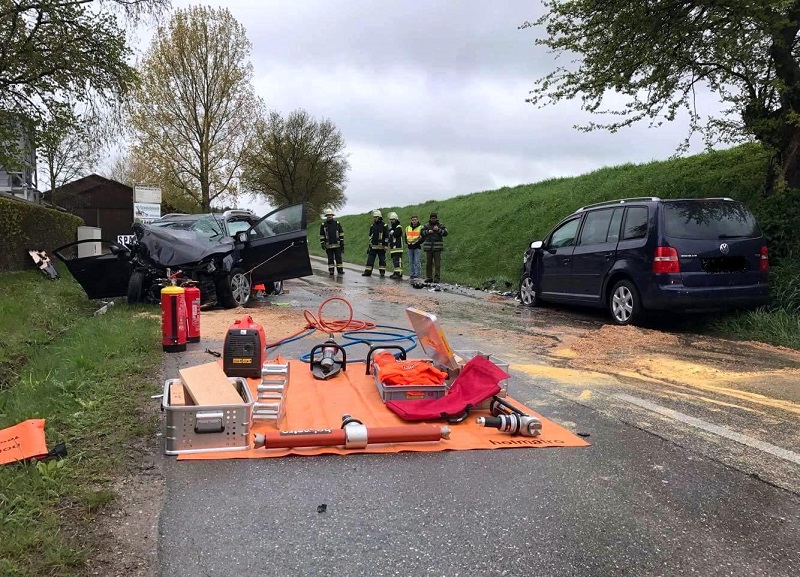 Wenige Minuten nach dem Alarm rückten ein Hilfeleistungslöschfahrzeug und ein Tanklöschfahrzeug aus. Vor Ort stellte sich die Situation jedoch so dar, dass bei einem Verkehrsunfall zwei Fahrzeuge frontal zusammengestoßen waren, aber zum Glück nicht in Brand geraten waren.