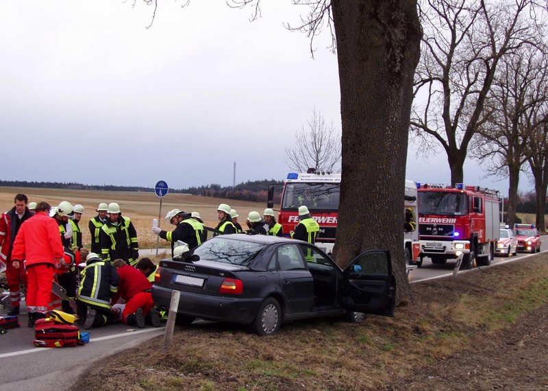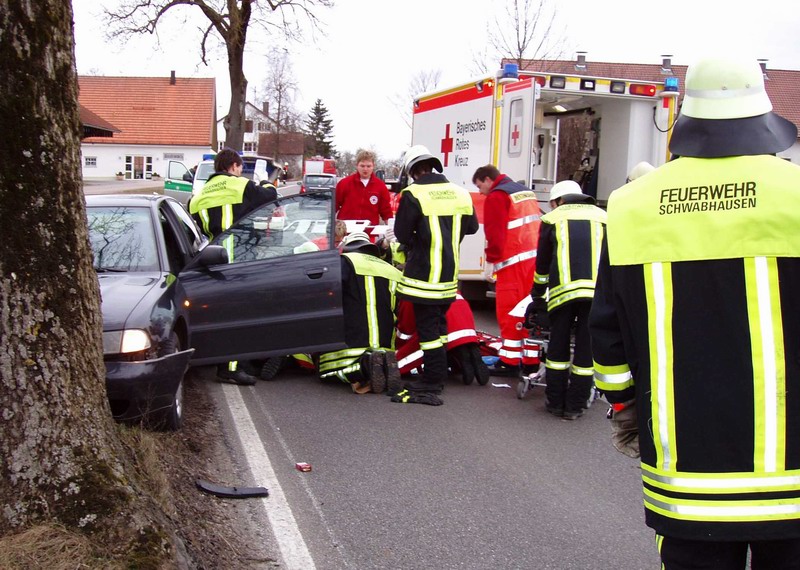 Aus ebenfalls noch ungeklärter Ursache kam in den Nachmittagsstunden des Sonntags (27.01.08) die Lenkerin eines Pkw`s auf der Staatsstrasse 2047 zwischen Oberroth und Schwabhausen, in Höhe Armetshofen, von der Fahrbahn ab und kam an einem Baum zum Stehen.Da zunächst unklar war, ob die Fahrerin in ihrem Fahrzeug eingeklemmt war, wurde neben Notarzt, Polizei und Rettungsdienst auch die Feuerwehren Oberroth, Rumeltshausen und Schwabhausen mitalarmiert.