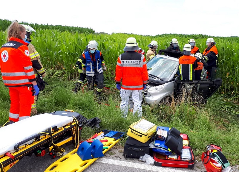 Zu einem „Verkehrsunfall mit eingeklemmter Person“ auf der Staatsstraße 2054 zwischen Welshofen und Unterweikertshofen wurden am Samstagmittag (18.07.2020) gegen 13.00 Uhr Feuerwehr und Rettungsdienst alarmiert.