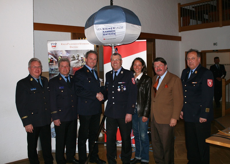 Seit vielen Jahren unterstützt die Versicherungskammer Bayern die Feuerwehren im Freistaat mit dem Sponsoring von Ausrüstung und Gerät. Bei der aktuellen Aktion, die seit 2009 läuft, verteilt die Versicherungskammer 96 spezielle Beleuchtungskörper „Powermoon“ an die Unterstützungsgruppen Örtliche Einsatzleitung (UG-ÖEL) in Bayern.Im Rahmen der Verbandsversammlung des Kreisfeuerwehrverbandes Dachau in Ried, überreichte Helmut Steck von der Versicherungskammer Bayern den elften „Powermoon“ für Oberbayern an Kreisbrandrat Heinrich Schmalenberg.