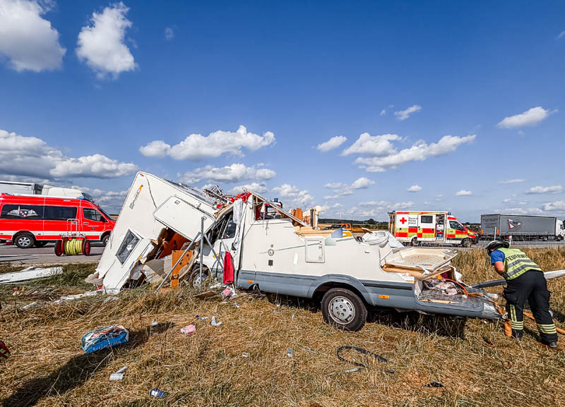 Vier Verletzte nach Unfall mit Wohnmobil auf der A 8