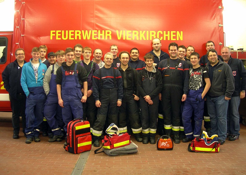 Seit knapp mehr als 3 Jahren ist die Integrierte Leitstelle in Fürstenfeldbruck in Betrieb, die Alarmierung der verschiedenen Rettungsorganisationen liegt seitdem in einer Hand. Somit werden die Kräfte der Feuerwehr zeitgleich mit den Kräften des Rettungsdienstes zu Einsätzen entsandt. Es kommt dadurch immer wieder vor, dass die Feuerwehr bereits vor dem Rettungsdienst und Notarzt an der Einsatzstelle eintrifft.Um bei Feuerwehreinsätzen auf diese Situationen mit schwer Verletzten oder erkrankten Personen vorbereitet zu sein, nahmen 18 Feuerwehrmänner der FF Vierkirchen an dem Lehrgang Ersthelfer Feuerwehr (EHF) des Landkreises Dachau teil. Im Rahmen der 16 Unterrichtseinheiten umfassenden Ausbildung wurden Grundlagen der notfallmedizinischen Versorgung, wie z.B. das Erkennen lebensbedrohlicher Zustände und deren Behandlung, Erstversorgung von Unfallopfern und Wiederbelebungsmaßnahmen mit Hilfe eines Defibrillators, vermittelt.