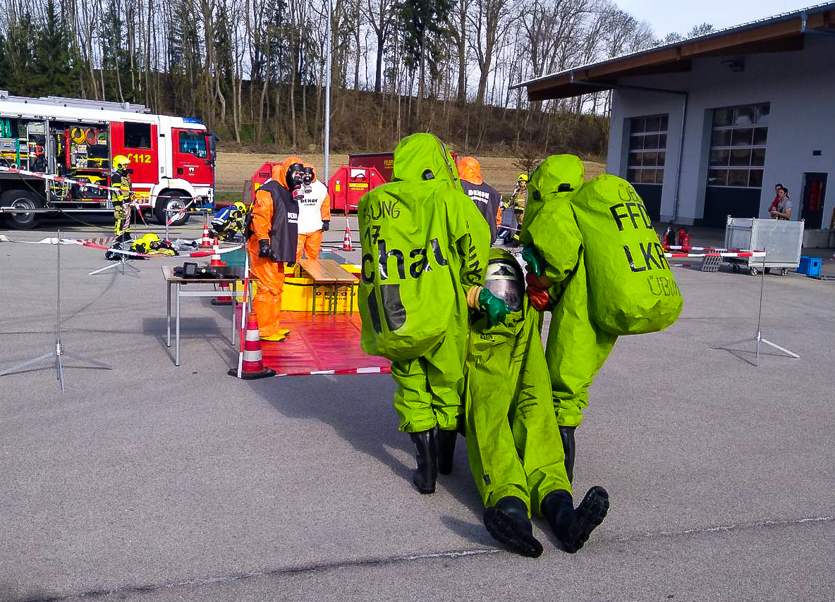 Während des Einsatzes erlitt einer der CSA-Träger aufgrund der hohen körperlichen Belastung eine Erschöpfung. Er wurde von seinen beiden Truppkameraden zur Dekontaminationsstelle gebracht, dort aus dem Schutzanzug befreit und anschließend dem Rettungsdienst zur weiteren Versorgung übergeben – selbstverständlich im Rahmen der Übung nur fiktiv dargestellt.