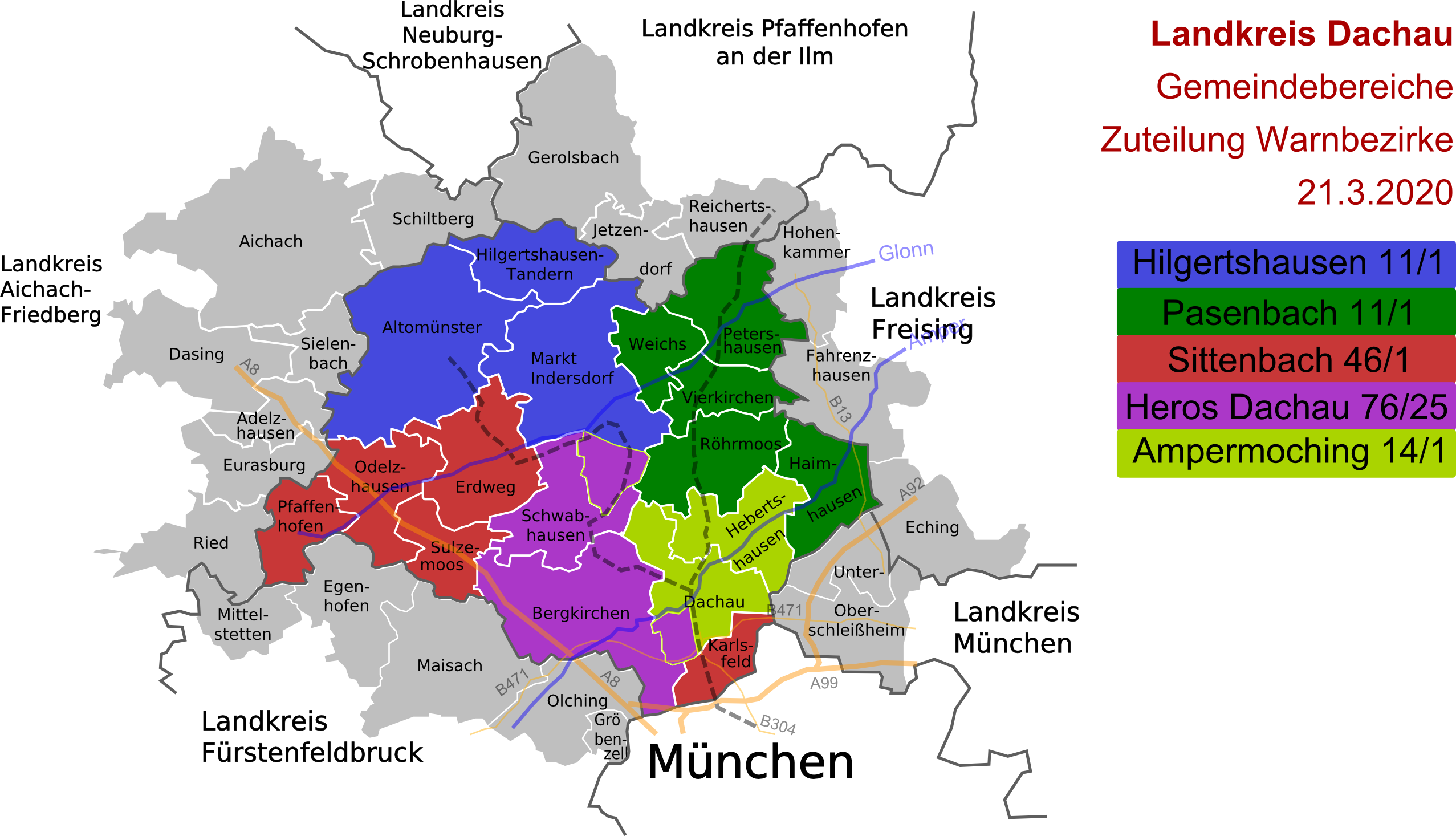Auf Anweisung des Landratsamtes Dachau wird durch die Dispogruppe Warnen seit heute (21.03.2020) im gesamten Landkreis der Text zur Allgemeinverfügung der Ausgangsbeschränkungen in Bayern mittels Lautsprechern durchgesagt.