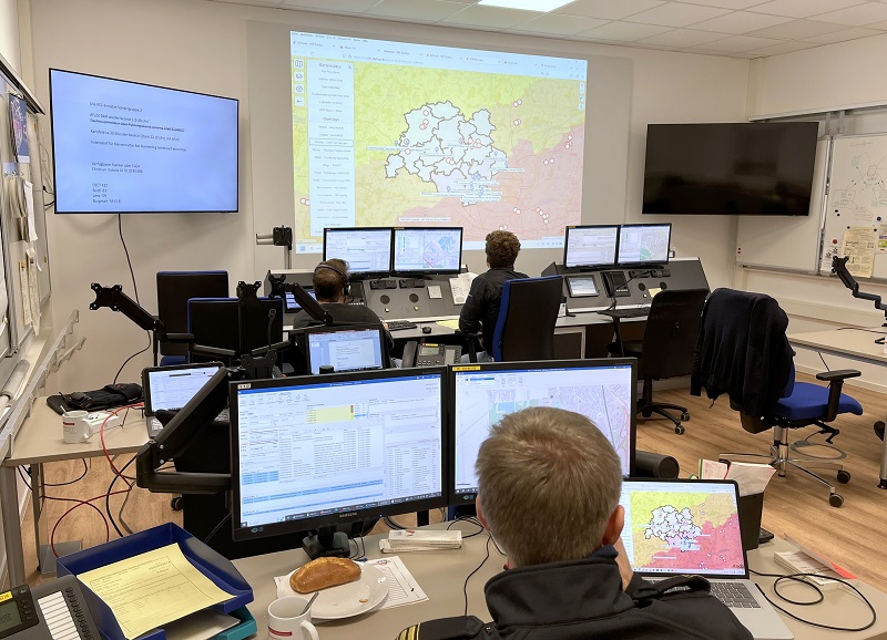 Aufgrund des großen Einsatzaufkommens in der Integrierten Leitstelle, wurde am Samstagvormittag ab 10.00 Uhr die Kreiseinsatzzentrale in Hebertshausen besetzt. Bis 18.00 Uhr wurden von dort aus die schneebedingten Feuerwehreinsätze im Kreisgebiet koordiniert.