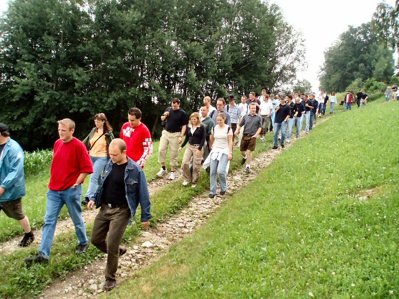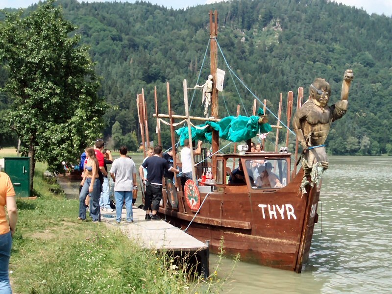 Der diesjährige Ausflug der Jugendwarte des Landkreises Dachau führte nach Oberösterreich an die Donau. Dort erwartete die Gruppe ein Ausflug auf den Pfaden der Wikinger. Mit dem Bus ging es nach Kirchberg an der Donau, wo das abenteuerliche Treiben mit einer Waldwanderung über den Wikingerpfad nach Obermühl begann. Auf der Wanderung bot sich ein herrlicher Blick über das Donautal. In Obermühl angekommen konnten die Kameraden am Ufer der Donau entspannen. Zur Stärkung für die bevorstehenden Strapazen gab ein deftiges Wikingerpfandl. Vom Gasthof aus ging es bei strahlendem Sonnenschein direkt an die Donau, wo bereits das Wikingerboot auf die Gäste wartete. Dann hieß es Wikingerhelme aufgesetzt und die Fahrt auf der Donau konnte losgehen. Kurz nach dem Ablegen hieß es für die Jugendwarte auch schon Rudern um möglichst schnell voran zu kommen und den am Ausflug beteiligten Booten im Wettkampf Parole bieten zu können. Den richtigen Takt gab Kreisjugendwart Stephan Hueber persönlich vor. Wer sich den Regeln auf dem Boot widersetzte wurde zur Strafe in den stilgerechten Käfig gesperrt. Erfrischung konnten sich die erschöpften Kameraden bei einer Wasserschlacht oder mit einem Sprung in die kühle Donau holen. Ziel der Fahrt war das Wikingerdorf in der Exklau. Hier bot sich die Möglichkeit Speis und Trank im Wikingerzelt zu sich zu nehmen oder sich sportlich mit Bogenschießen oder Speerwurf zu betätigen. Von dort ging es am Abend mit dem Bus wieder zurück nach Dachau.