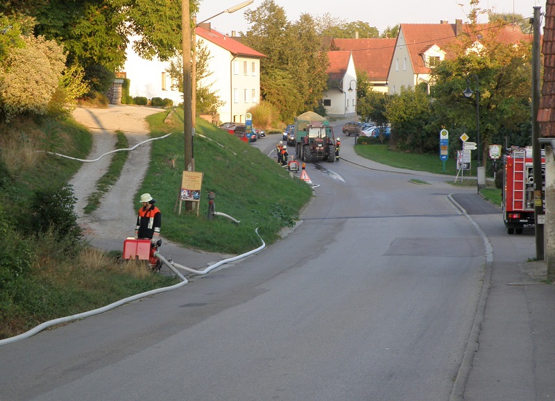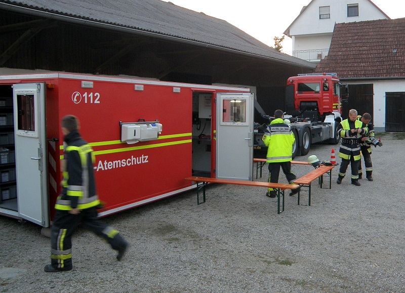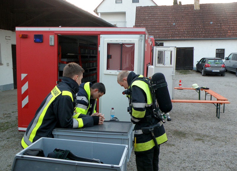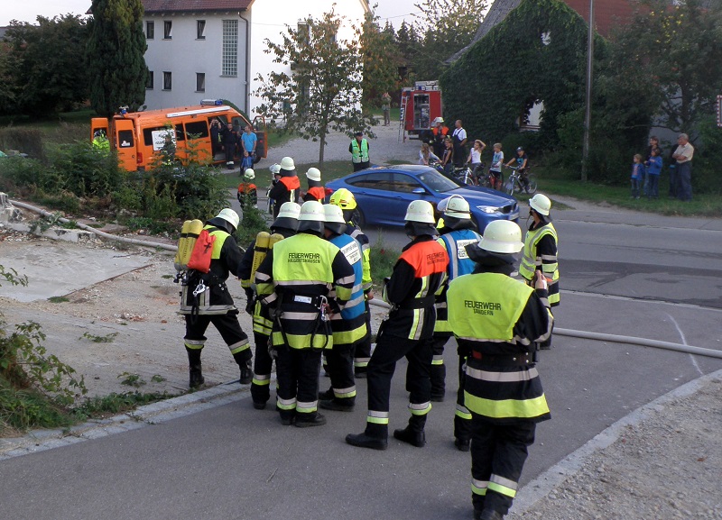 Insgesamt haben sich an der Übung 59 Feuerwehrleute aus den Wehren Tandern, Hilgertshausen, Randelsried und Schiltberg beteiligt. Zur Unterstützung kam auch der Abrollbehälter Atemschutz aus Dachau sowie die Unterstützungsgruppe Örtliche Einsatzleitung.