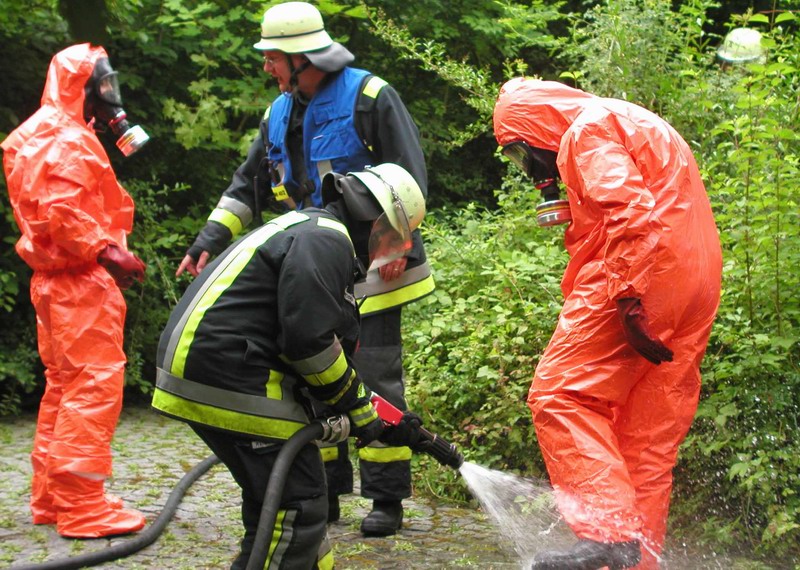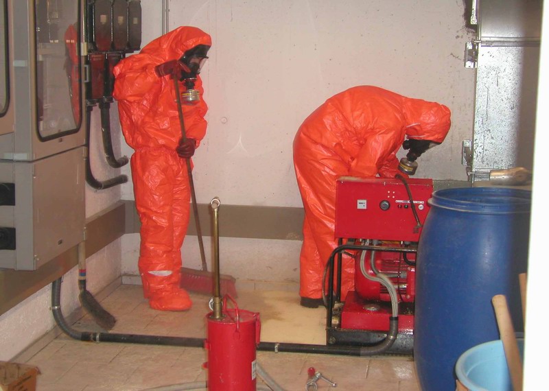 Die ausgelaufene Säure wurde mit einem speziellen Bindemittel entfernt. Die Einsatzkräfte mussten dabei Säureschutzanzüge und Atemschutzmasken mit Filter tragen, wodurch die Arbeit erschwert wurde, da das Atmen mit Filtern besonders anstrengend ist.