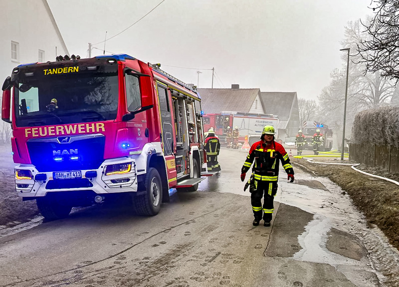 Am Donnerstagvormittag (22.01.2026) wurde die Feuerwehr um 10.09 Uhr zu einem Zimmerbrand im Ortsteil Stadelham (Gemeinde Hilgertshausen-Tandern) alarmiert.Beim Eintreffen der ersten Einsatzkräfte stellte sich die Lage als Küchenbrand dar. Umgehend wurde ein Innenangriff unter Atemschutz eingeleitet, zwei Trupps drangen in das Gebäude zur Brandbekämpfung vor. Parallel wurde ein Sicherungstrupp gestellt, der im weiteren Einsatzverlauf ebenfalls bei den Nachlöscharbeiten tätig werden musste.
