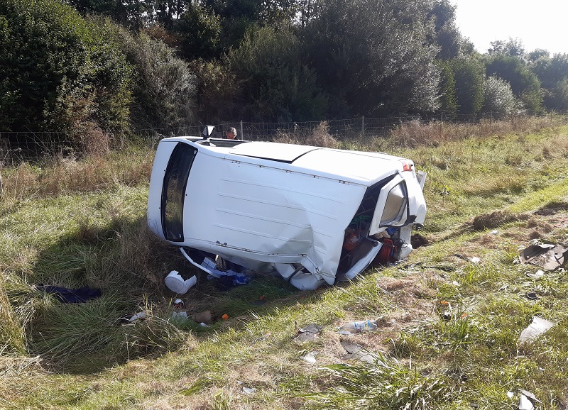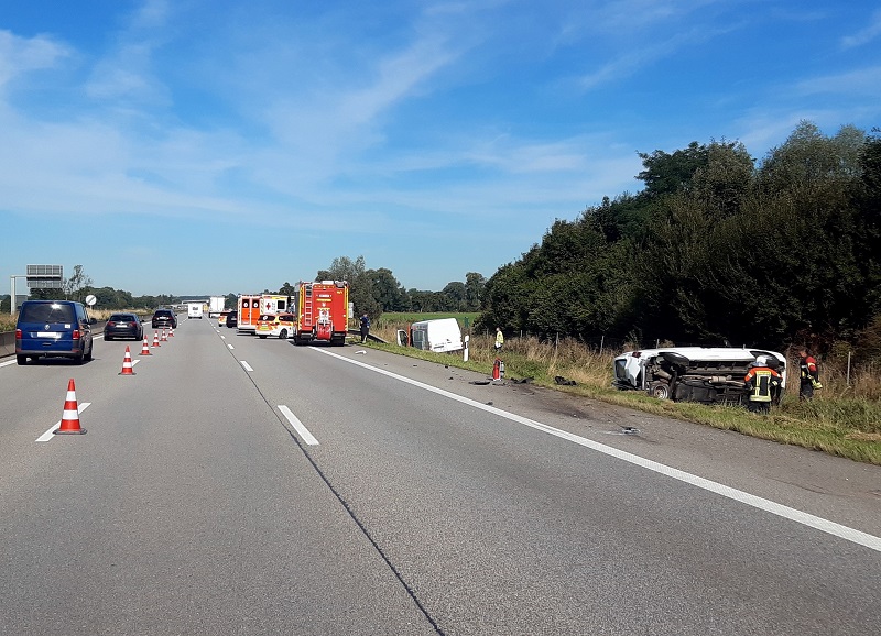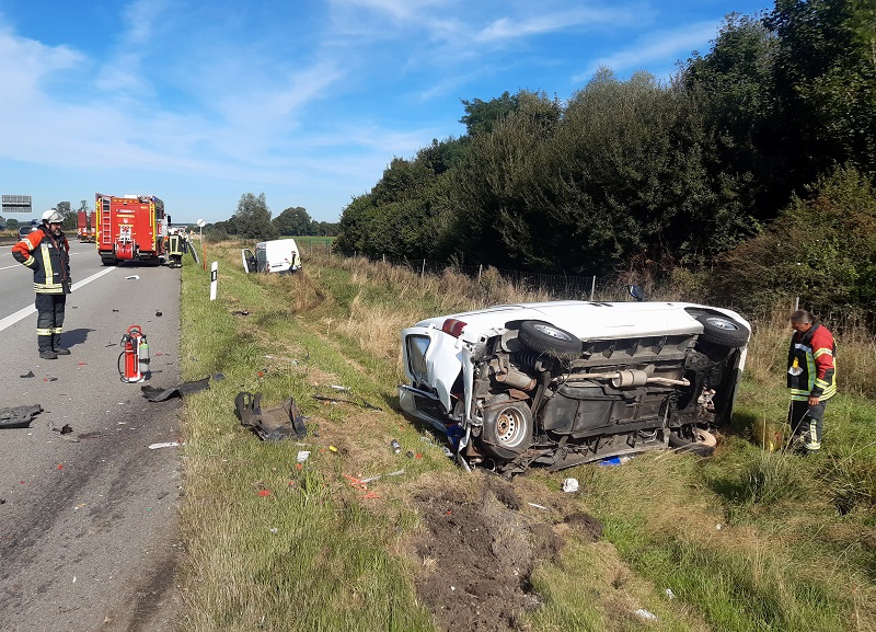 Durch den Aufprall wurden beide Transporter in den angrenzenden Grünstreifen geschleudert, das Fahrzeug, welches auf dem Standstreifen stand, kam dabei auf der Seite zum Liegen.