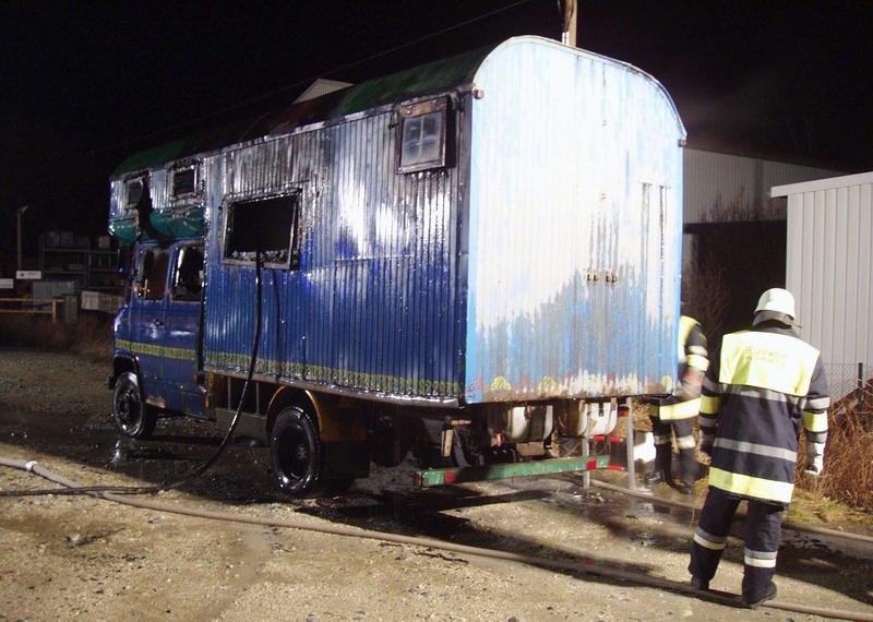 Aus noch ungeklärter Ursache geriet in den Abendstunden des Montags (03.03.08) in Altomünster ein Wohnmobil in Brand, das auf dem Parkplatz am Bahnhof abgestellt war. Nachdem bekannt war, dass sich in dem Fahrzeug Gasflaschen befanden, wurden neben der Feuerwehr Altomünster vorsorglich auch die umliegenden Wehren alarmiert. Feuerwehrmänner, mit schwerem Atemschutz ausgerüstet, drangen in das Innere des Wagens vor, bargen und kühlten die Gasflaschen, brachten sie ins Freie und bekämpften die Flammen mit einem C-Rohr.