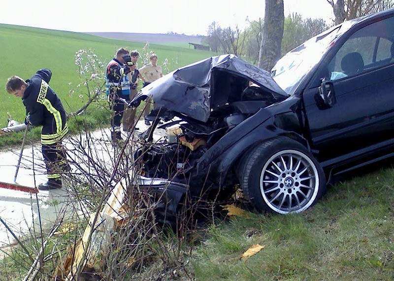 Ein BMW-Fahrer kam kurz vor Langenpettenbach auf der linken Fahrbahnseite von der Staatsstraße ab und kollidierte ungebremst mit mehreren Bäumen. Das Fahrzeug blieb auf der Beifahrerseite liegen, seine Frontpartie wurde bei dem Aufprall vollständig zerstört. Der ebenfalls alarmierte Rettungsdienst übernahm die Versorgung der Verletzten, die Feuerwehr Langenpettenbach sicherte das Fahrzeug gegen das Auslaufen von Betriebsstoffen und die Unfallstelle gegen den fließenden Berufsverkehr.